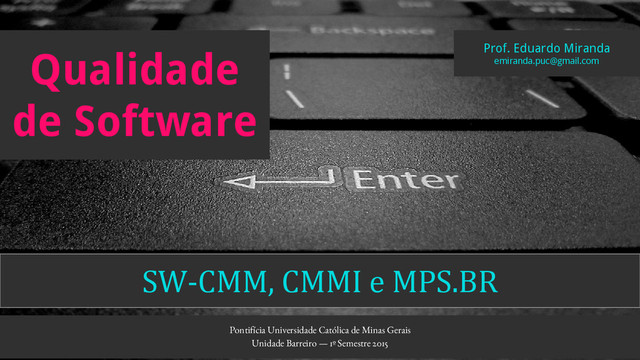 Slides utilizados em aula na disciplina Qualidade de Software do Instituto de Ciências Exatas e Informática - Sistemas de Informação. Pontifícia Universidade Católica de Minas Gerais - Unidade Barreiro, 1º Semestre 2015.