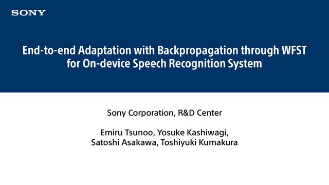 Interspeech2019で発表した「End-to-end Adaptation with Backpropagation through WFST for On-device Speech Recognition System」についてです。