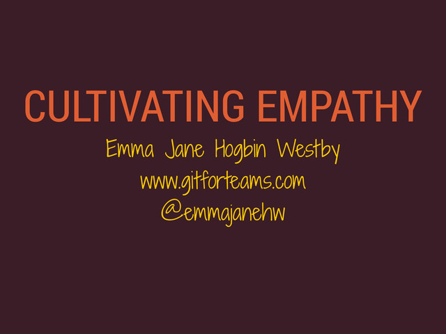 Even if you still aren't comfortable with the "e" word by the end of this talk, you will have a better grasp on how to apply work-place appropriate, tangible techniques to produce higher functioning, happier teams.
