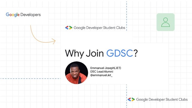 Developer Relations India @lakshyas90 Why Join GDSC? Emmanuel Joseph(JET) DSC