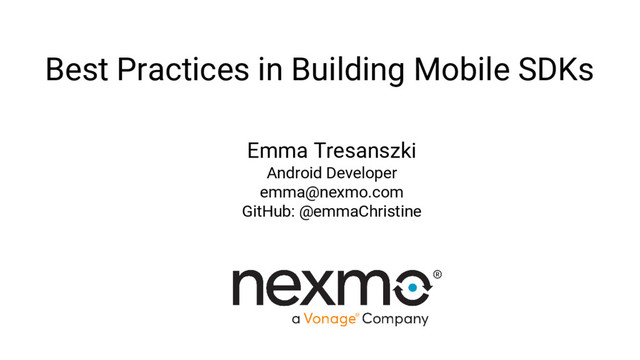 Best Practices in Building Mobile SDKs Emma Tresanszki Android Developer