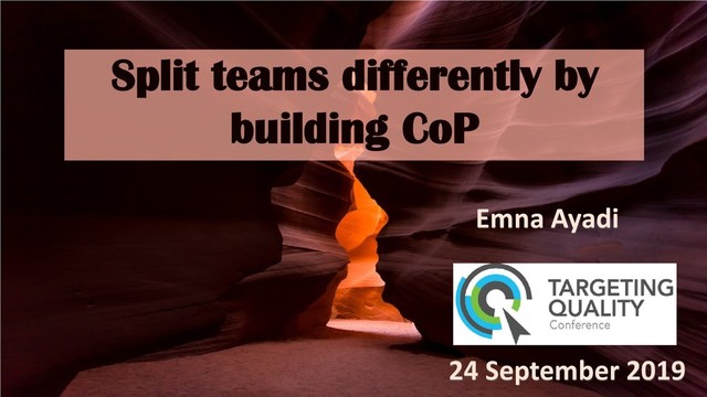 Those communities offer multiple important advantages to members and to organization. In this talk, Emna will brings examples of community of practice development within the testing community. She will illustrate why communities of practice are an essential part of agile organization and what role they can perform in the short and long term. Also she will refer to the importance of gamification in building those communities and other helpful strategies to connect participants using different methods of fragmenting the organization such as spotify model.