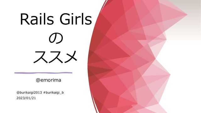 Rails Girls の ススメ @emorima @burikaigi2013 #burikaigi_b 2023/01/21