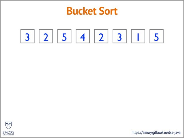 https://emory.gitbook.io/dsa-java Bucket Sort 3 2 5 4 2 3 1