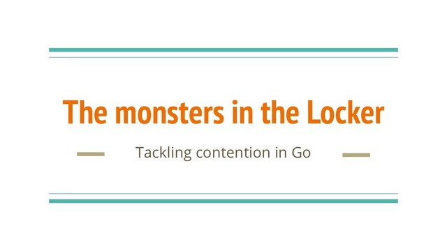 orchestration, readability and writability for the extra speed. That said Go mutexes are fair and fast. If a mutex becomes contended the same principles apply: ◦ Sharding (beware of Zipf law) ◦ Batching (beware of inconsistency) ◦ Shorten critical section to what is needed RWMutex: for a very high reads/writes ratio