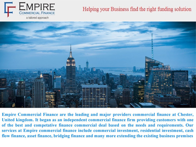 As a commercial mortgage provider we offer commercial and corporate finance services to all the small scale and large scale business organizations. Empire commercial finance has been successful in maintaining relationship with one of the best UK leading lenders including finance providers, the high street lenders, small building societies, and private finance boutiques giving customers with what ever they need. We offer services like business mortgages, commercial mortgages, business loans, bridging finance, asset finance and more ensuring you with major advantages like reducing the cost of the existing commercial mortgage you have, increasing the cash flow increasing the working capital. Connect with us today to know more about the services we offer at empire commercial finance.