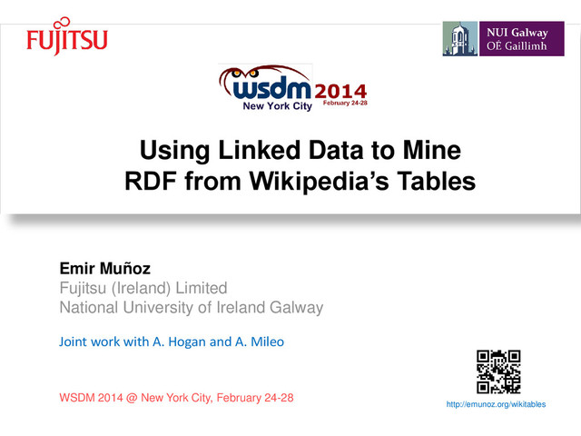 Emir Muñoz Fujitsu (Ireland) Limited National University of Ireland Galway Joint work with A. Hogan and A. Mileo WSDM 2014 @ New York City, February 24-28