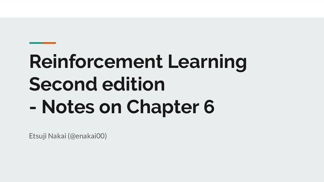 の比較 15 https://github.com/enakai00/rl_book_solutions/blob/master/Chapter06/SARSA_vs_Q_Learning_vs_MC.ipynb SARSA: 17 ############ # 901# # 2# # 8 3# #01 7 G 4# # 2 6 65# # 345 # # # ############ Q-Learning: 15 ############ # 6789# # 5 0# # 4 1# #0123 G 2# # 43# # # # # ############ MC: 15 ############ # 6789# # 5 0# # 4 1# #0123 G 2# # 43# # # # # ############ • この例では Q(S, A) の初期値が 0 なので、 Exploration がより積極的に行われる点に注意