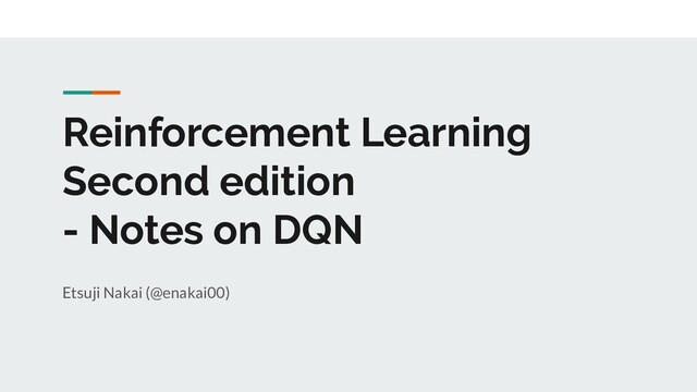 Reinforcement Learning Second edition - Notes on DQN Etsuji Nakai