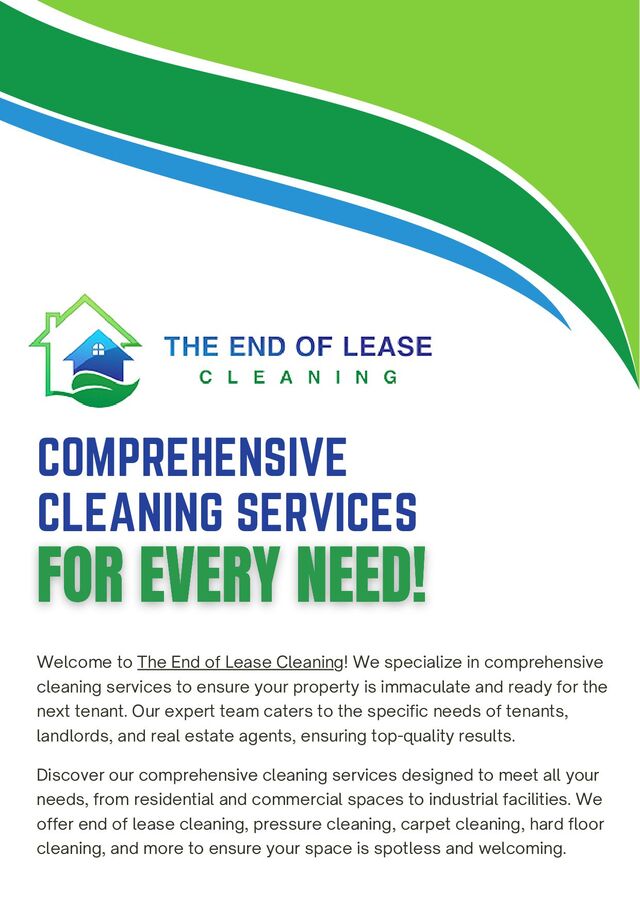 Discover expert cleaning services tailored for tenants, landlords, and real estate agents. From end of lease to residential, commercial, industrial, pressure, carpet, hard floor, and office cleaning, we ensure spotless and welcoming spaces. Visit The End of Lease Cleaning today to book your service!