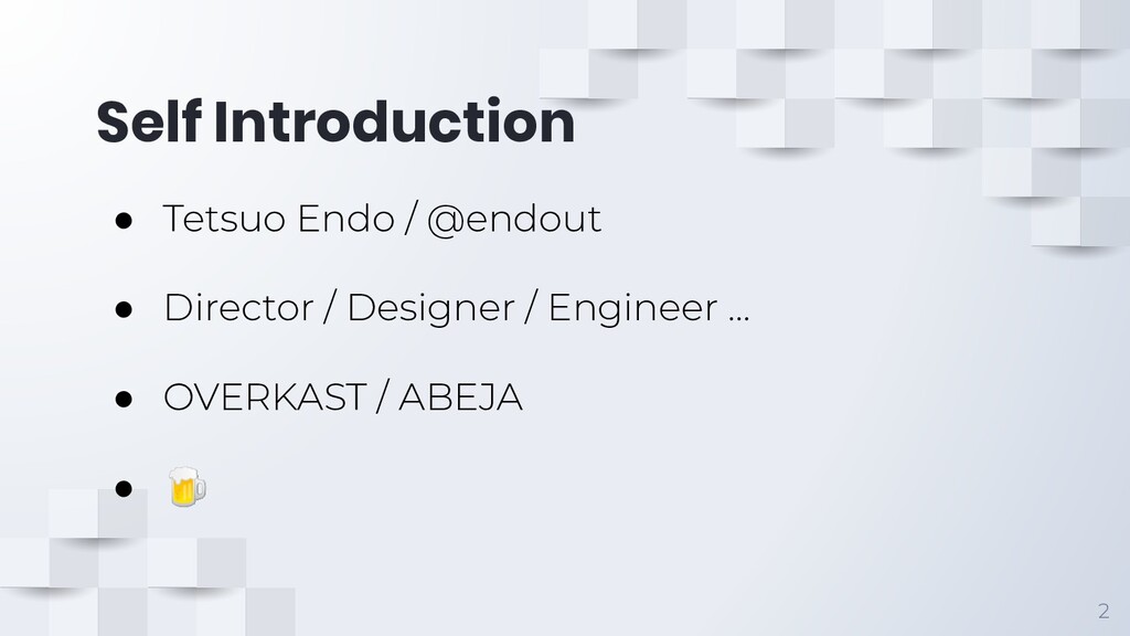 Self Introduction 2 • Tetsuo Endo / @endout • Director