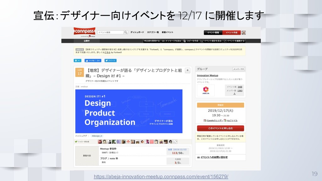 19 宣伝:デザイナー向けイベントを 12/17 に開催します https://abeja-innovation-meetup.connpass.com/event/156279/