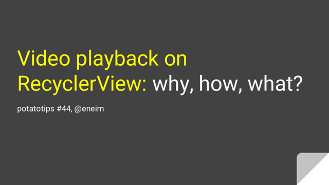 ◆ Responsive to User scroll, auto start/pause. ➔ ✅ Respect stuff on demand ◆ Respect to the Lifecycle, respect to UI change, etc ➔ ✅ Easy to use ◆ Easy as write an xml + a Custom ViewHolder. ◆ Complicated setup is backed by a rich feature Demo App (= Copy/Paste ready). ◆ Advanced usage ready (also Copy/Paste ready by Demo App) ➔ ❎ Testable → Not yet ◆ 4.x+ or maybe 5.x+ ...