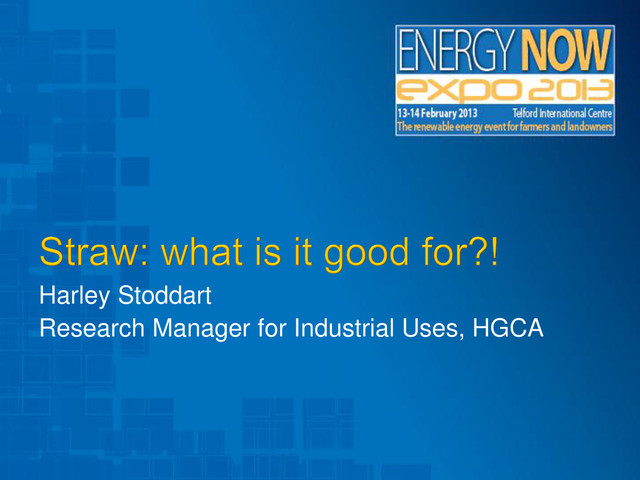 UK Arable Agriculture Harley Stoddart Research Manager for Industrial Uses at HGCA