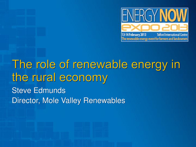 if no grid upgrade and own use – av 15% simple ROI RHI for our members gives – • A tremendous opportunity – get rid of heating costs for 20yrs – in fact create an income ! • The best chance of any other group of people to get your houses as well in phase 1 • Reduce Business costs – making us more profitable and competitive - a real no brainer! • ~10 – 32% returns being calculated over 20 yrs index linked ! • These returns very unlikely to stay available • Heat efficiency standards will be introduced for future new systems – may be a prob for Agriculture ! Wind – • Anti campaign growing Rental- • PV interesting if sound company. • Biomass – be v.careful AD • Needs lower cost options