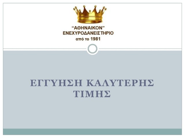 Το Αθηναϊκό Ενεχυροδανειστήριο βρίσκεται από το 1981 στην Αγίου Κωνσταντίνου 2 στην Ομόνοια στον δεύτερο όροφο. Πάνω από 35 χρόνια είμαστε πρωτοπόροι στα Δάνεια με Ενέχυρο, στην Αγορά Χρυσού, Επώνυμων Ρολογιών, Ασημικών Σκευών, Πολύτιμων Λίθων κ.α. Με εχεμύθεια, απόλυτη ασφάλεια και με τις υψηλότερες τιμές της αγοράς. Σε εμάς μπορείτε να ελέγχετε καθημερινά την τιμή χρυσού η οποία είναι μία παγκοσμίως και καθορίζεται από τους επίσημους δείκτες οι οποίοι μεταβάλλονται καθημερινώς ακόμα και μέσα στην ίδια ημέρα!