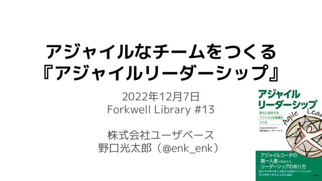 アジャイルなチームをつくる『アジャイルリーダーシップ』 - Forkwell Library#13 https://www.youtube.com/watch?v=vCSXjrrTJ_w