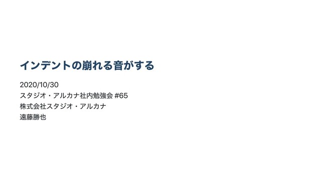 インデントの崩れる⾳がする 2020/10/30 スタジオ・アルカナ社内勉強会 #65 株式会社スタジオ・アルカナ 遠藤勝也