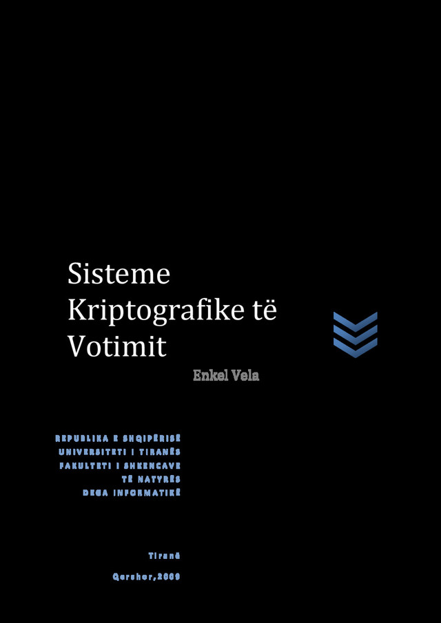 Enkel Vela: Kjo tezë analizon teknika kriptografike për realizimin e zgjedhjeve të verifikueshme dhe me votë të fshehtë. Tregohet forca e votimit kriptografik e në veçanti aftësia e tij për të arritur me sukses si verifikueshmërinë ashtu edhe fshehtësinë e votës, kombinim ky që nuk mund të arrihet ndryshe.
