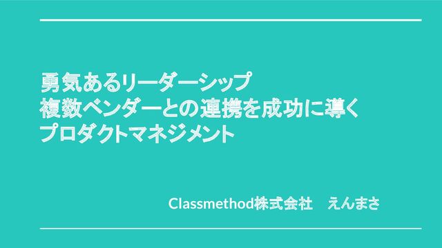 勇気あるリーダーシップ 複数ベンダーとの連携を成功に導く プロダクトマネジメント Classmethod株式会社 えんまさ