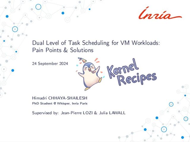 When a multi-threaded application runs inside a virtual machine, it experiences a dual level of task scheduling. The guest OS’ task scheduler decides how to place application threads on the vCPUs, and the host OS’ task scheduler decides how to place these vCPU threads on the pCPUs. While the guest is aware of the application threads’ activities inside the VM, it is often oblivious about the status of its vCPUs on the host. On the other hand, the host is aware of the status of the vCPUs, but it is oblivious about the application threads’ activities inside the VM. Thus, neither the guest nor the host have the complete information to make optimal task placement decisions across both the levels. This leads to the well-known semantic gap between the host and the guest task schedulers. Many existing academic as well as in-kernel solutions partially help by targeting specific issues spanning from the semantic gap. And more recently, we might be getting closer to achieving a generic and complete solution with the efforts of standardizing the paravirt scheduling interface[1].