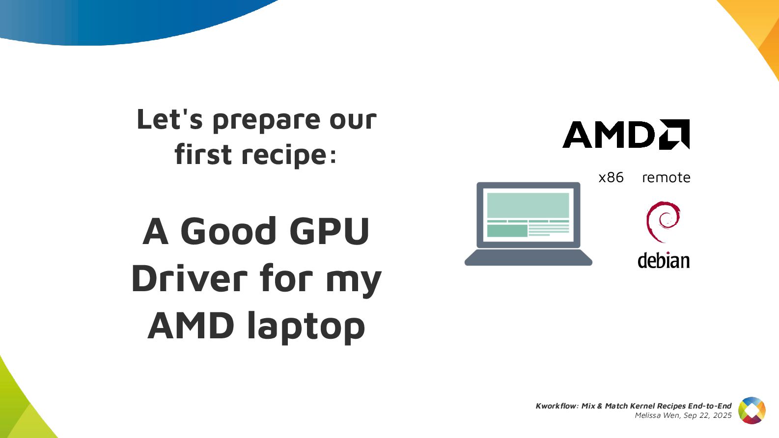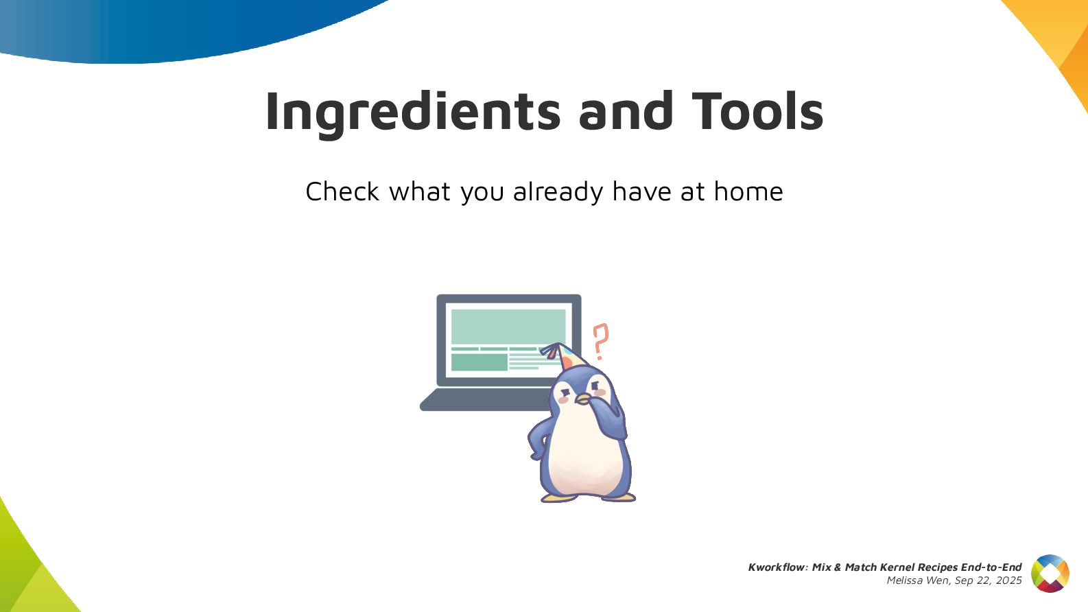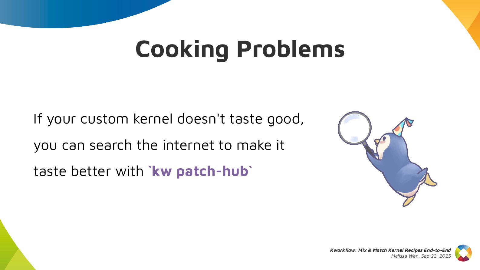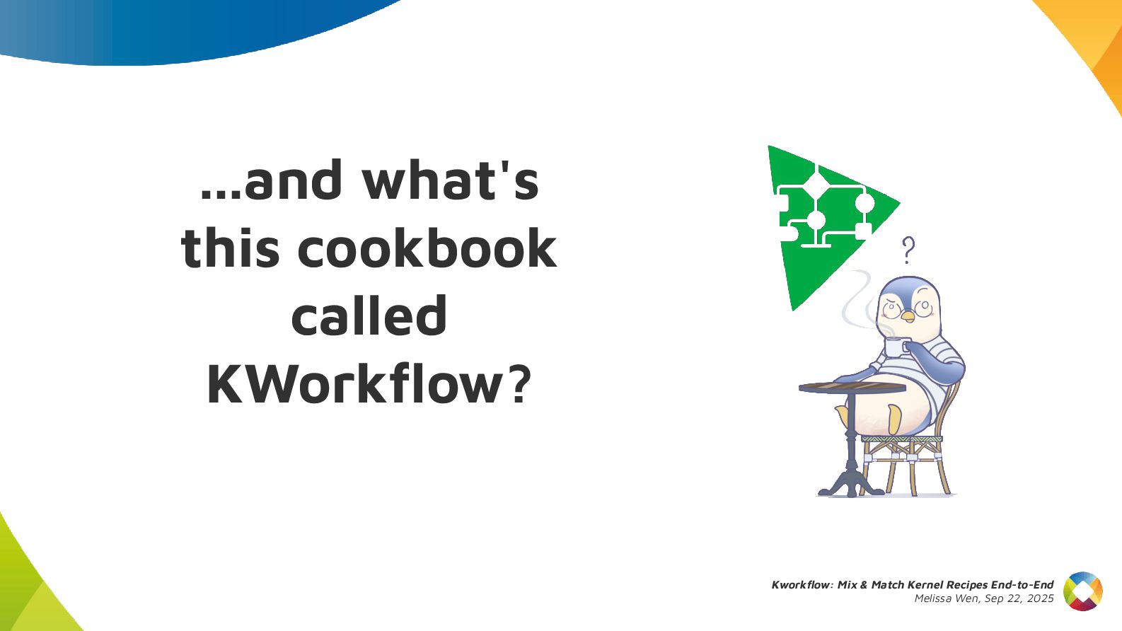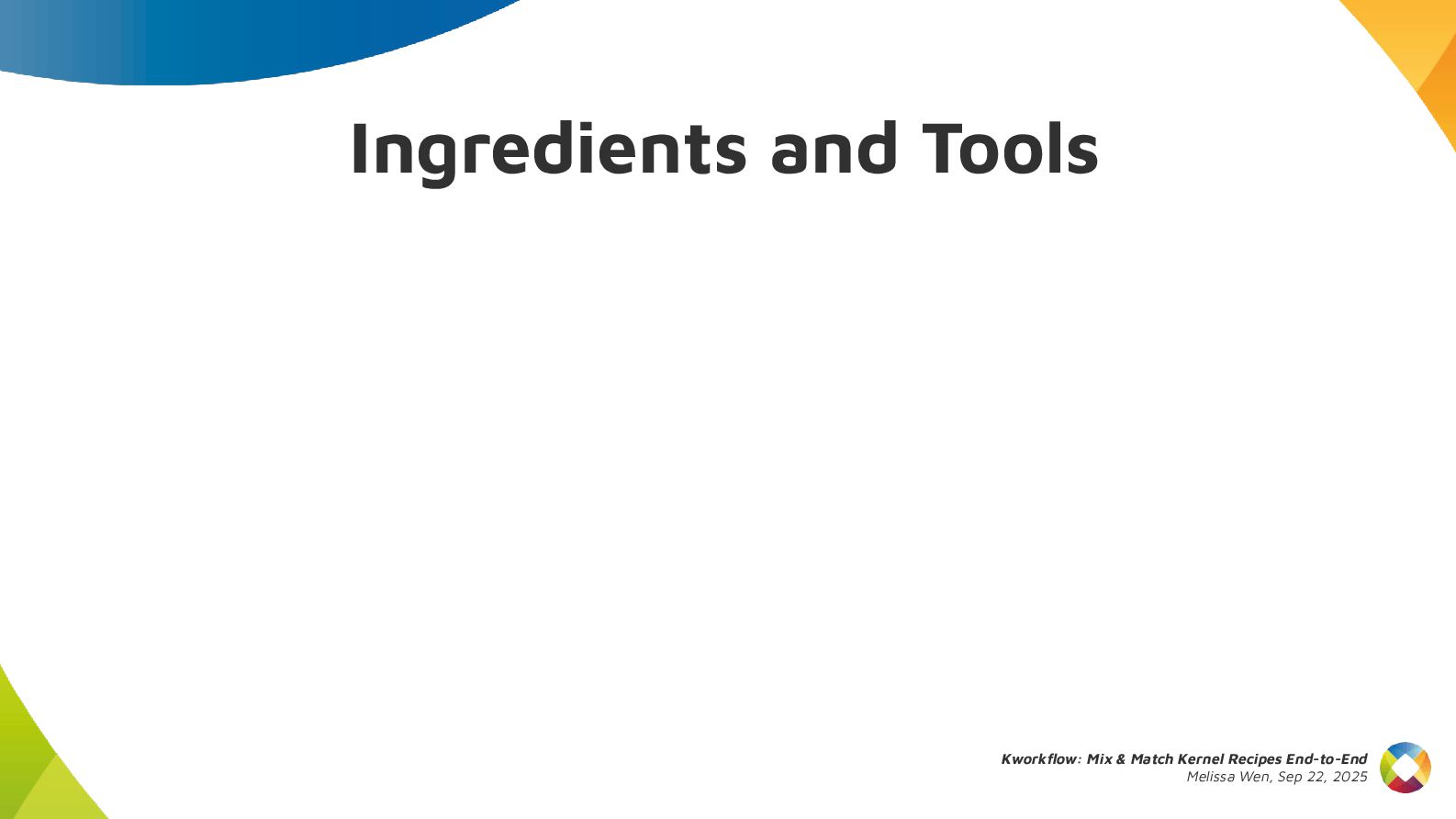 This talk introduces kw, a project designed to optimize your kernel workflow, automate common practices, and standardize data exchange. By consolidating valuable tools, scripts and recipes from the kernel community, kw aims to boost efficiency and collaboration.