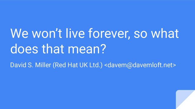about basic things like mortality and the inevitability of death. Those are hard things to think about when your source tree won’t even build or gcc 12 is spitting out a new annoying warning or two. But as maintainers we are absolutely responsible for acknowledging that and doing something to protect the long term legacy of our projects.