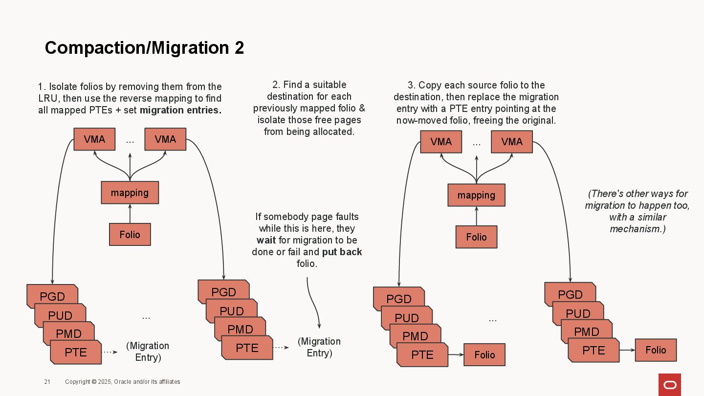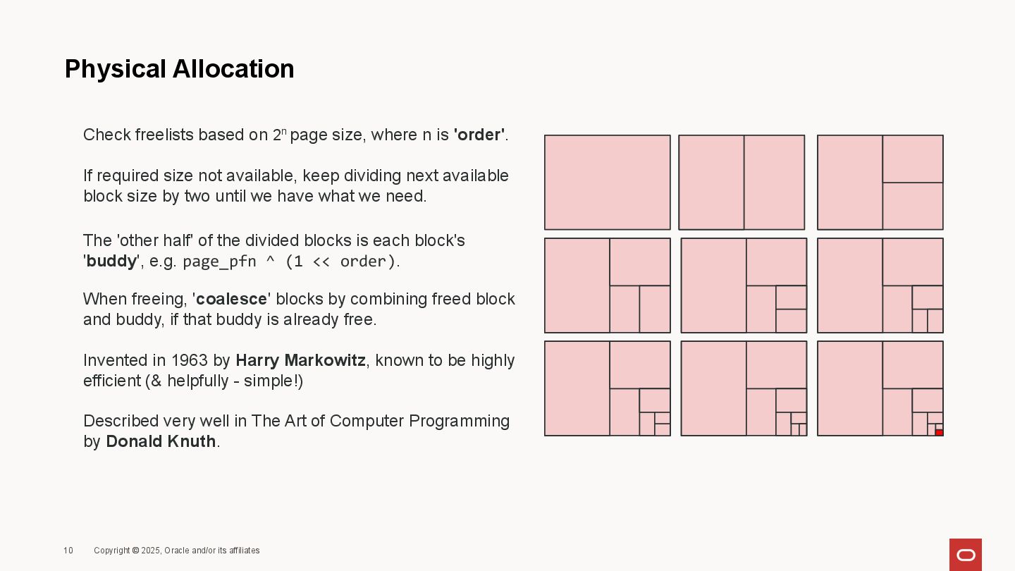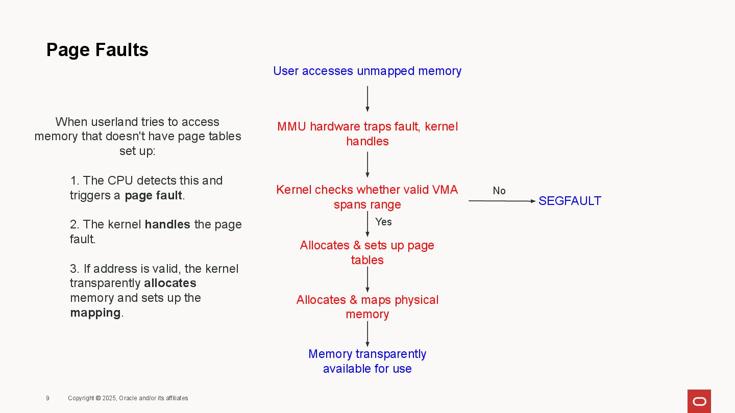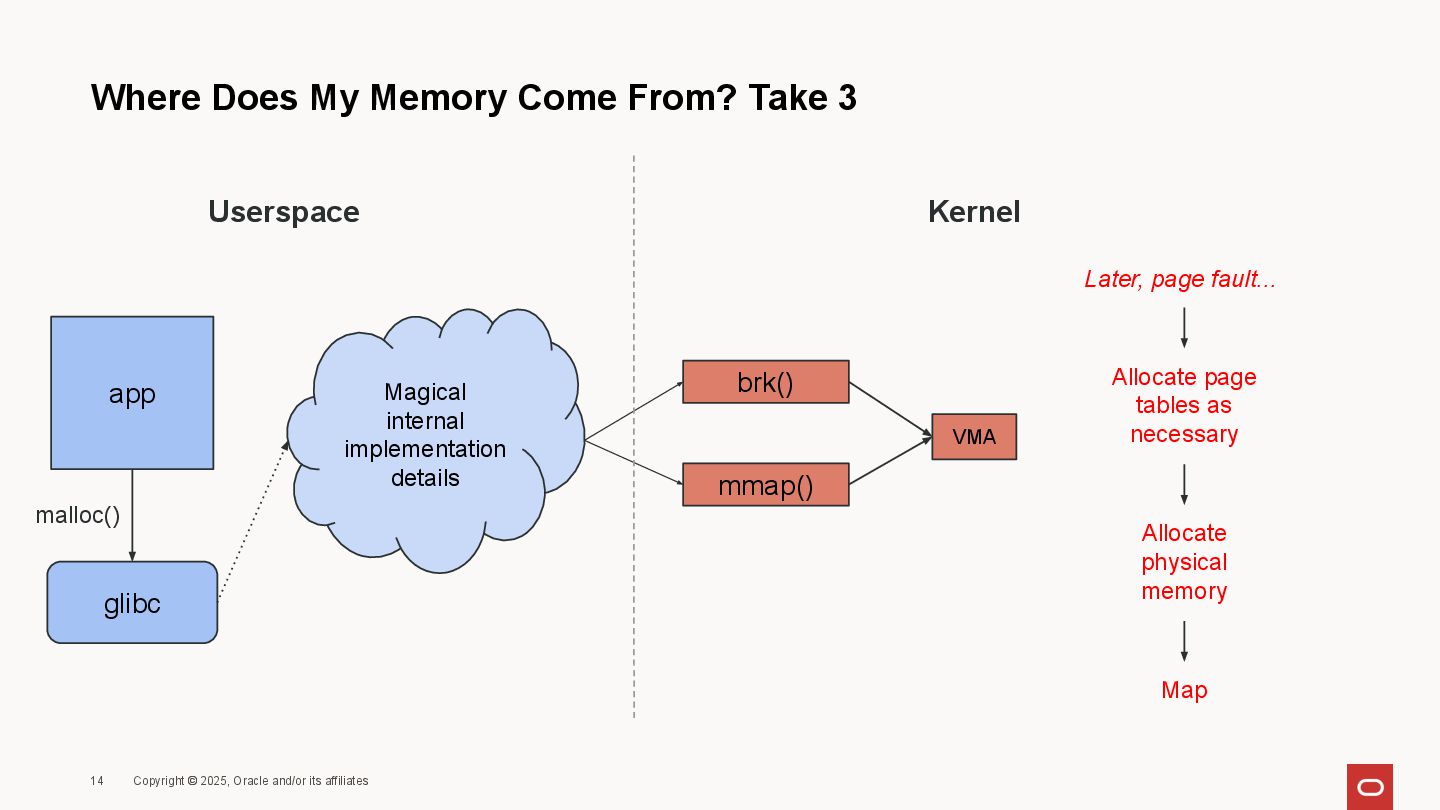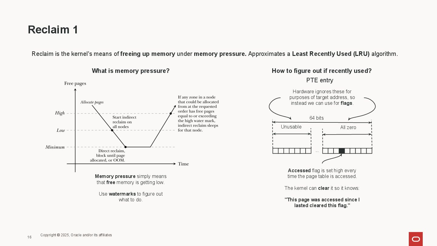 This talk provides a deep-ish dive into the APIs the kernel provides to userland to map memory, how they work internally, how the kernel tracks everything, what might happen to that memory (e.g. reclaim, migration) and how we handle that, the dread terror of forking, VMA merging and splitting and all those intricate cogs that must keep turning to do what seems the most fundamental thing any program might do – allocating memory.