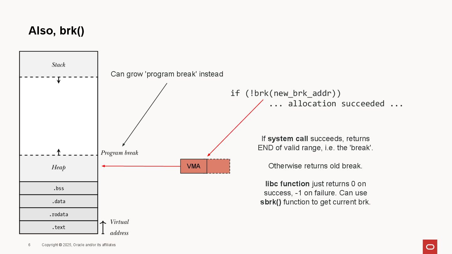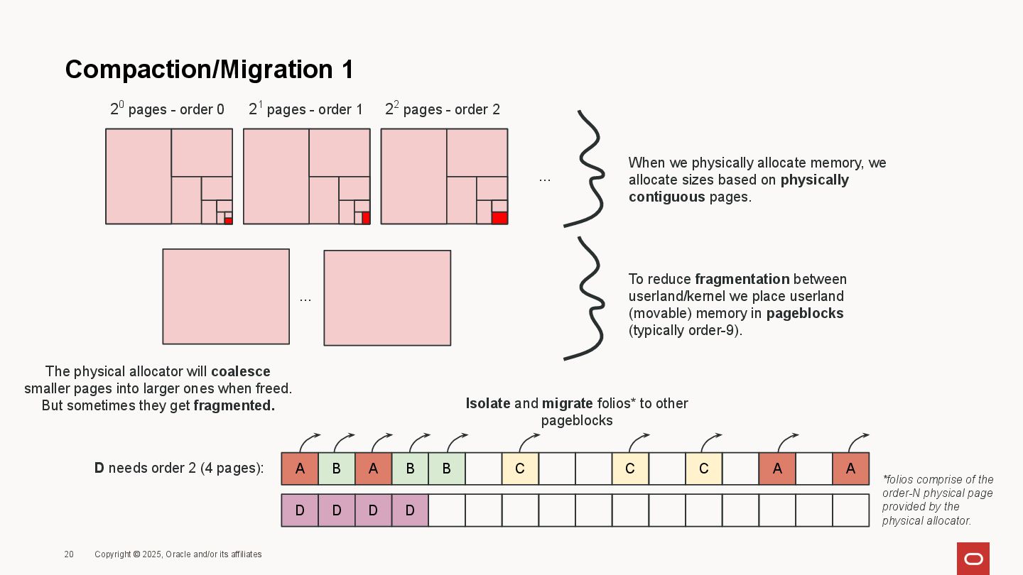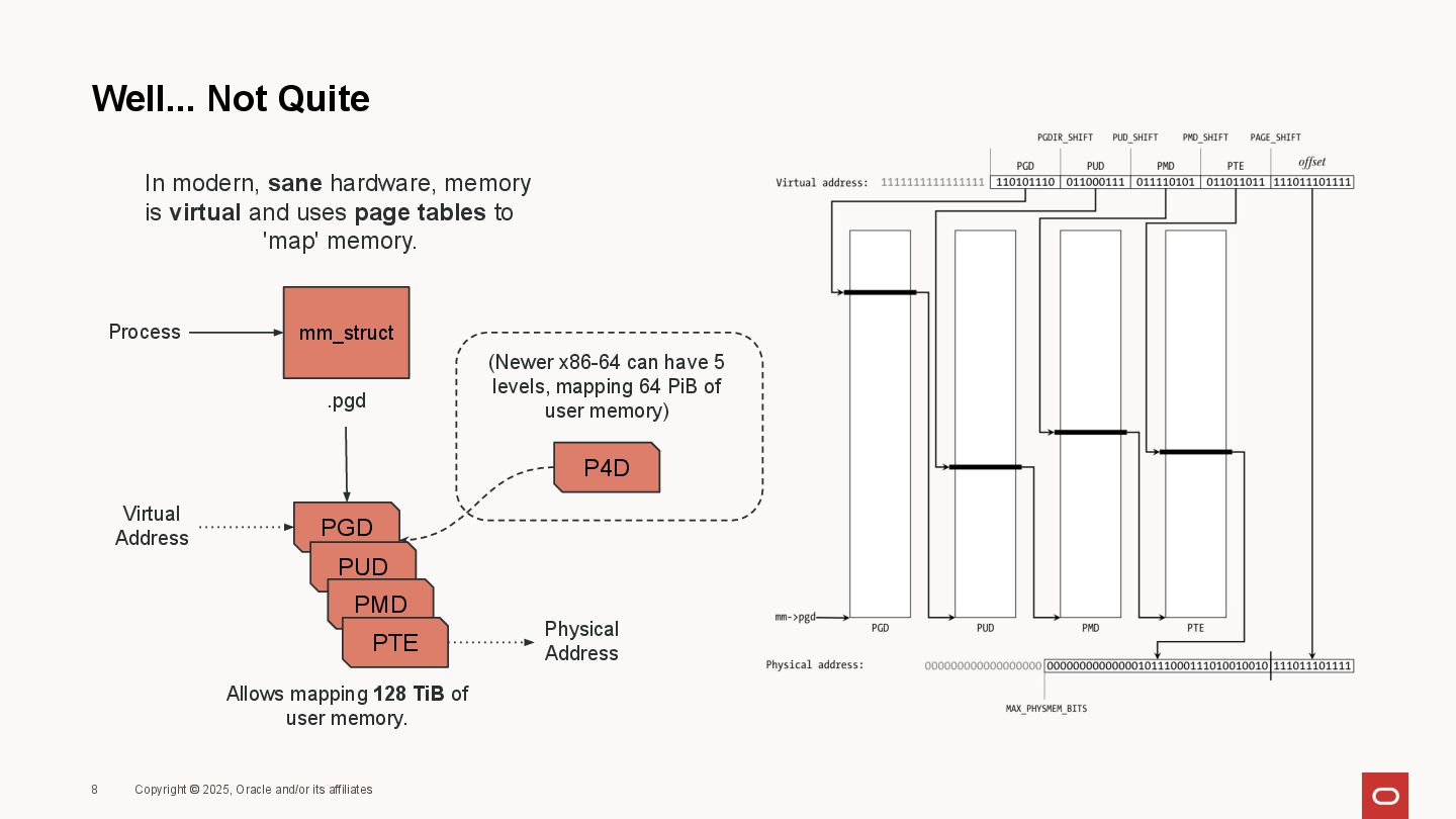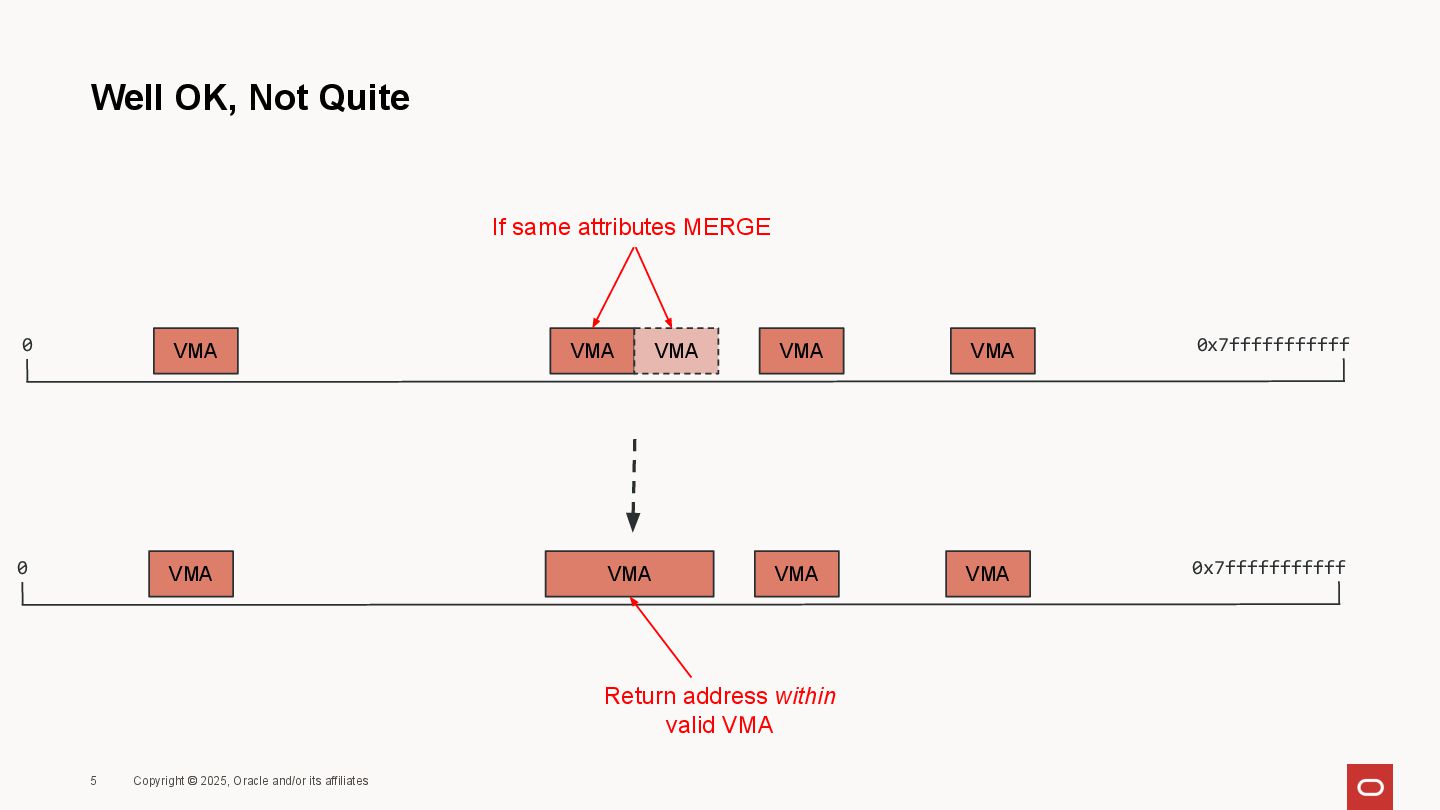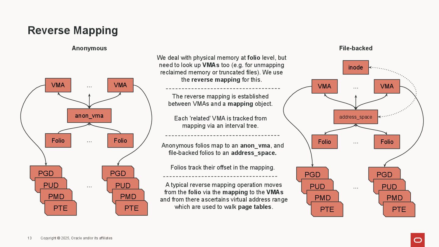 This talk provides a deep-ish dive into the APIs the kernel provides to userland to map memory, how they work internally, how the kernel tracks everything, what might happen to that memory (e.g. reclaim, migration) and how we handle that, the dread terror of forking, VMA merging and splitting and all those intricate cogs that must keep turning to do what seems the most fundamental thing any program might do – allocating memory.