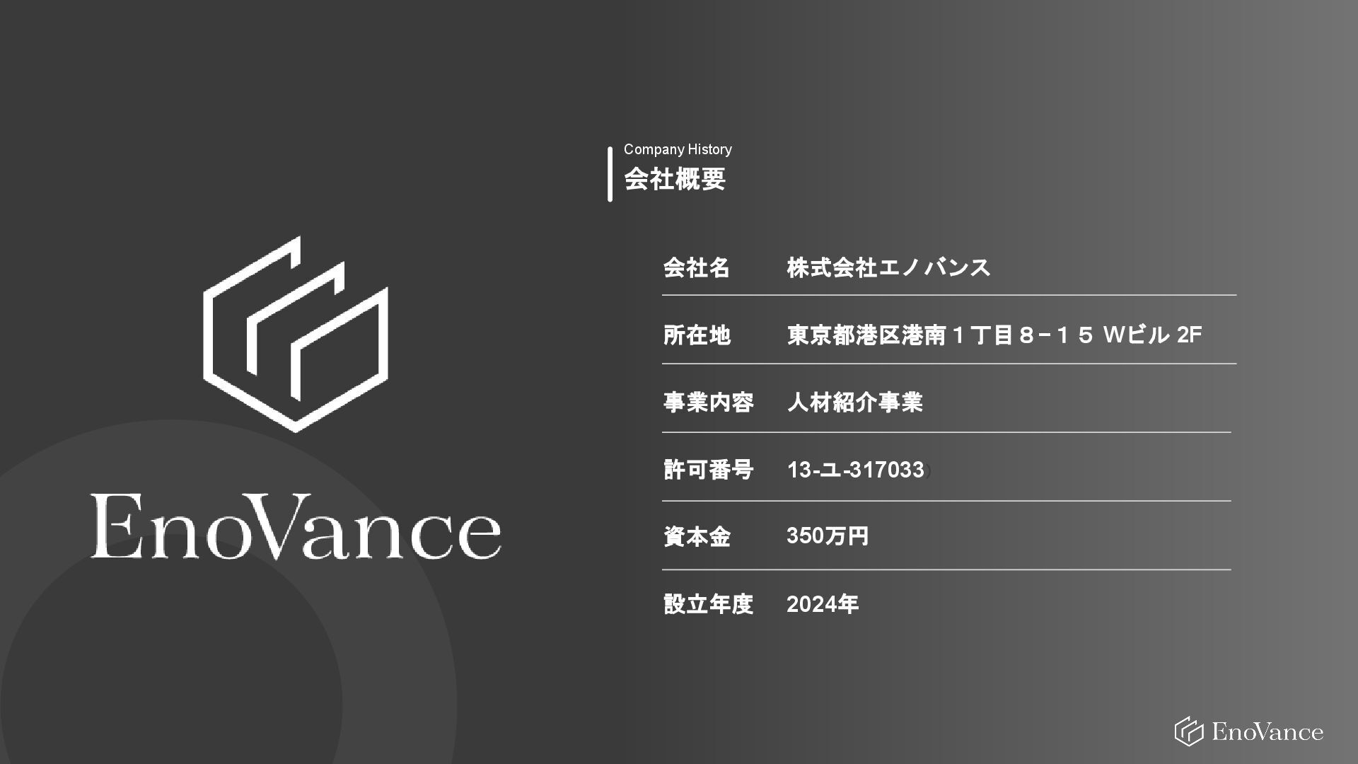 COMPANY DECK 会社説明資料 | 株式会社エノバンス Last Updated 2025.04.10