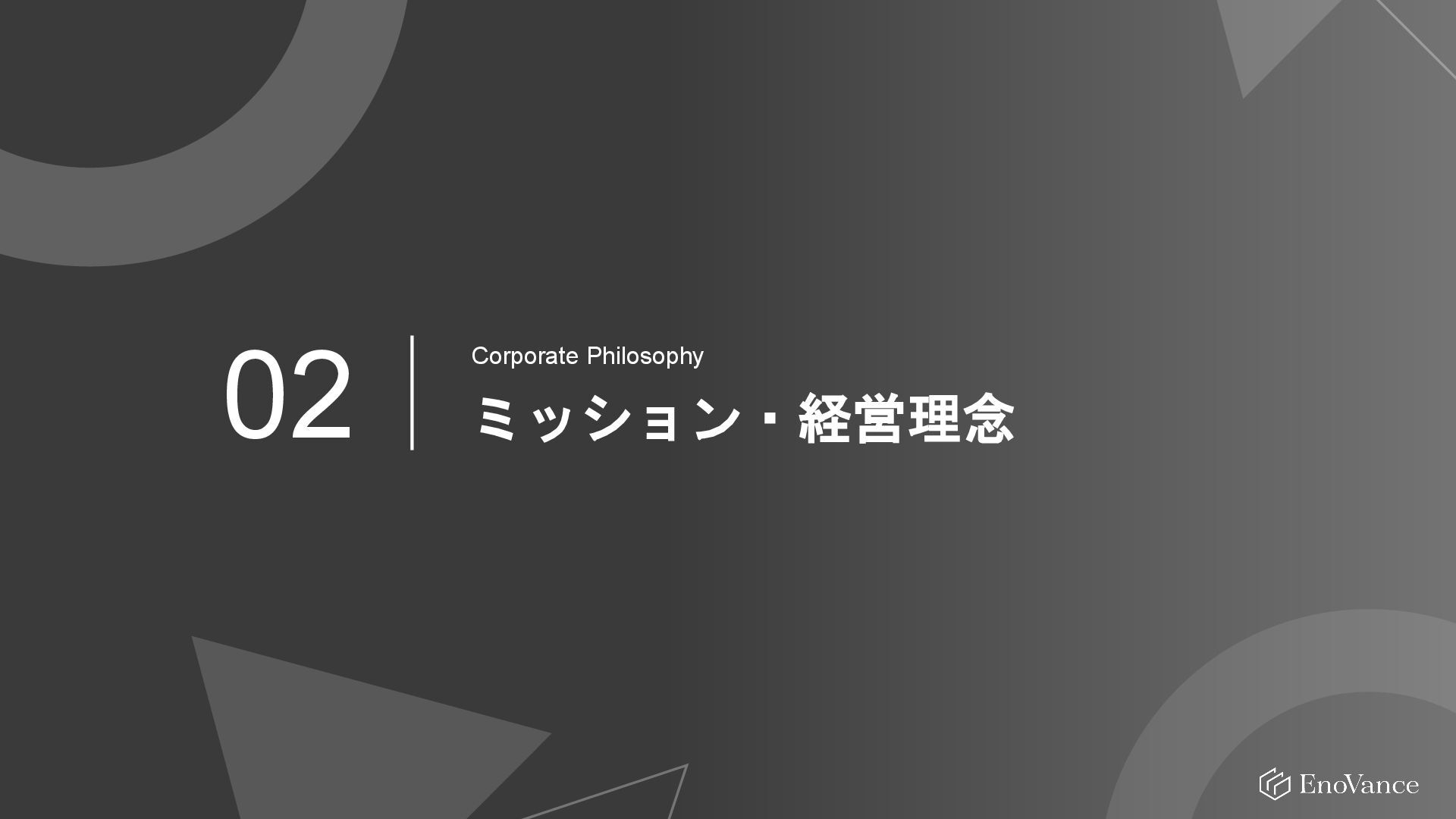 Philosophy 現状に満足することなく、常に社会や顧客の 変化にアンテナを張り、既存の枠にとらわれ ない柔軟な発想と行動力で、新たな価値の創 造に挑み続けます。 Mission / Corporate Philosophy