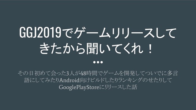 GGJ2019でゲームリリースして きたから聞いてくれ! その日初めて会った 3 人が 48 時間でゲームを開発してついでに多言 語にしてみたり Android 向けビルドしたりランキングのせたりして