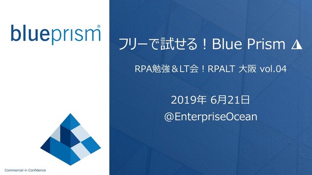 Commercial in Confidence フリーで試せる!Blue Prism ◮ RPA勉強&LT会!RPALT 大阪 vol.04 2019年