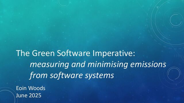 In this talk we will briefly review the history of sustainable software development in academia and industry, review the current state of the art in measuring the environmental impact of a software system. With the use of case studies, we will illustrate the significant effect that architectural decisions can have, positively or negatively, on a system's environmental sustainability, and explore some of the architectural techniques, tactics, and patterns that we can use to estimate and reduce the environmental impact of our software systems.