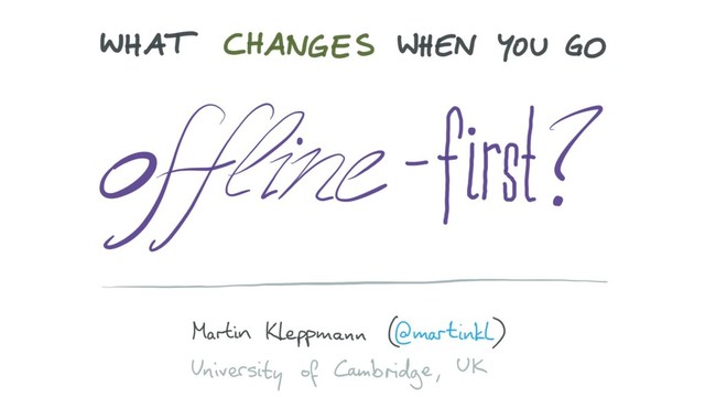 We call such apps “offline-first”. However, in the offline-first world there is an issue that is not so often talked about: moving from server-centric to offline-first deeply changes the programming model. For example, if several users each change the data while offline, how do you merge them back together again?