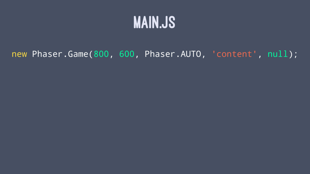 MAIN.JS new Phaser.Game(800, 600, Phaser.AUTO, 'content', null);