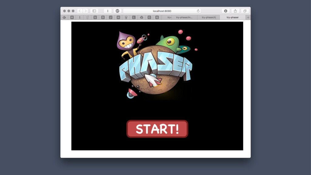 INDEX.HTML <!doctype html> <html> <head> <meta charset="UTF-8" /> <title>try-phaser</title> <link