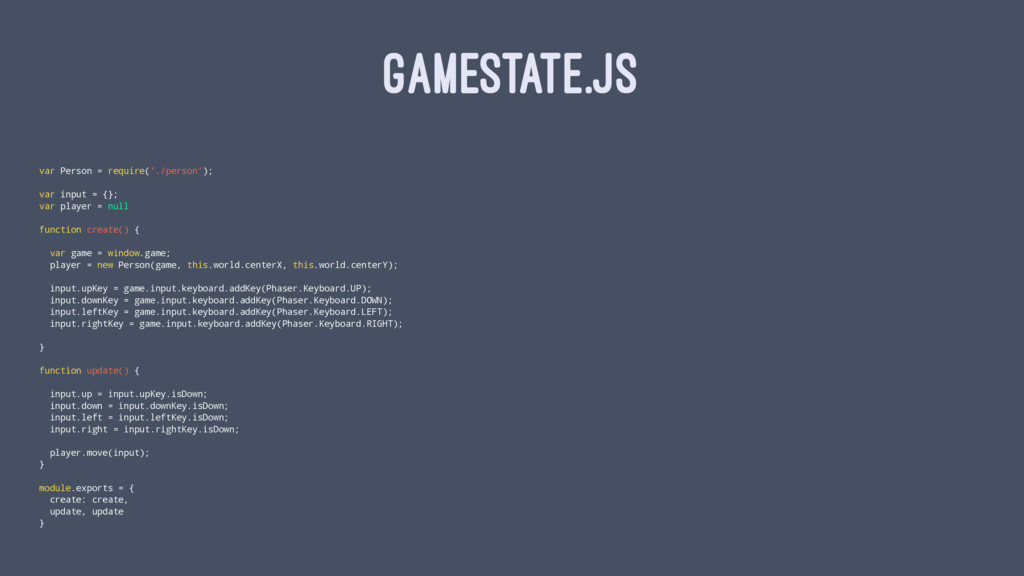 GAMESTATE.JS var Person = require('./person'); var input = {}; var