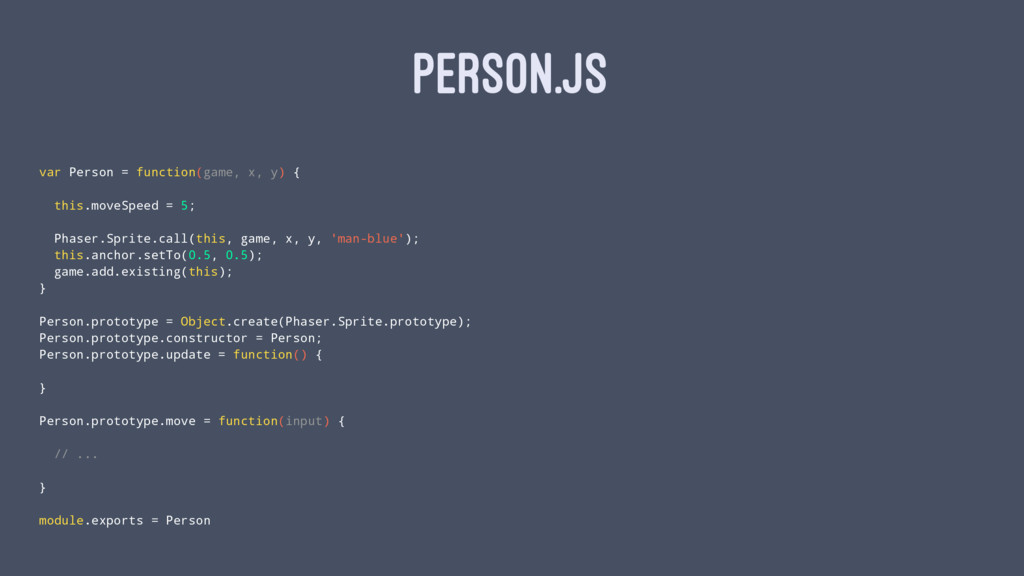 PERSON.JS var Person = function(game, x, y) { this.moveSpeed =