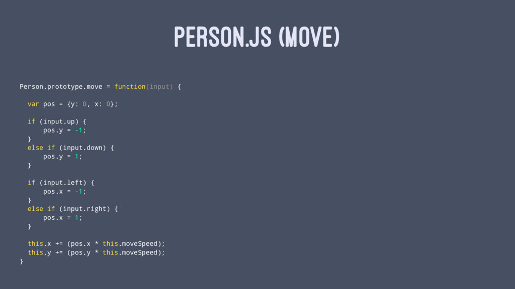 PERSON.JS (MOVE) Person.prototype.move = function(input) { var pos = {y: