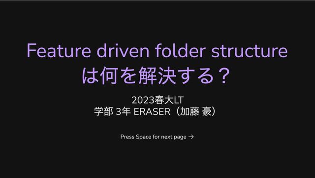 Feature driven folder structure は何を解決する? 2023 春大LT 学部 3 年