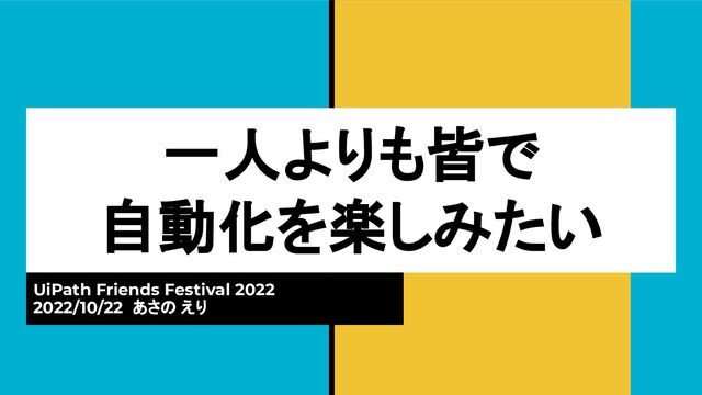一人よりも皆で 自動化を楽しみたい UiPath Friends Festival 2022 2022/10/22 あさの えり