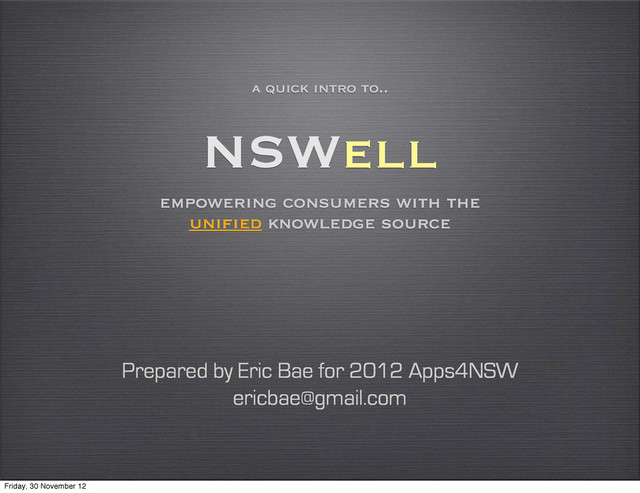 publish a variety of data in a consistent and user-friendly way * Analytics! - Cross-examine and analyze data sets to tell more interesting stories! Friday, 30 November 12
