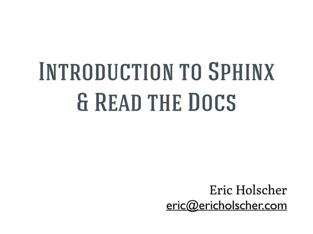 • Gives you the most semantic meaning • Most extensible • Sphinx adds documentation semantics to reStructuredText • Play with it at http://rst.ninjs.org
