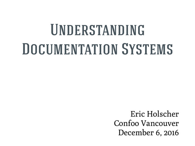 The talk aims to impart high-level understanding of the concepts around documentation generation, which will be applicable to most documentation tooling, whether it be Commonmark, RST, or Asciidoc.