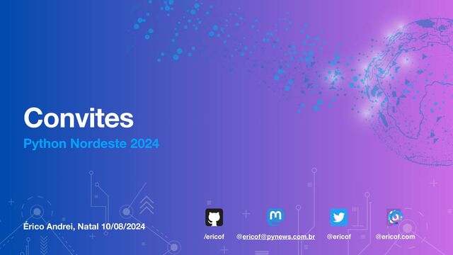 Érico Andrei, Natal 10/08/2024 Convites Python Nordeste 2024 /ericof @ericof