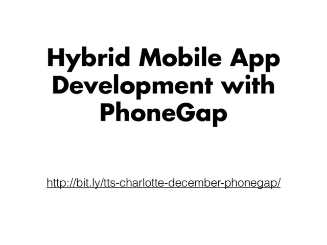Presentation for Charlotte's Tech Talent South chapter going over some basic information about hybrid apps and the types of mobile apps. This is just an introduction before we start building an example weather app using PhoneGap and Forecast.io.