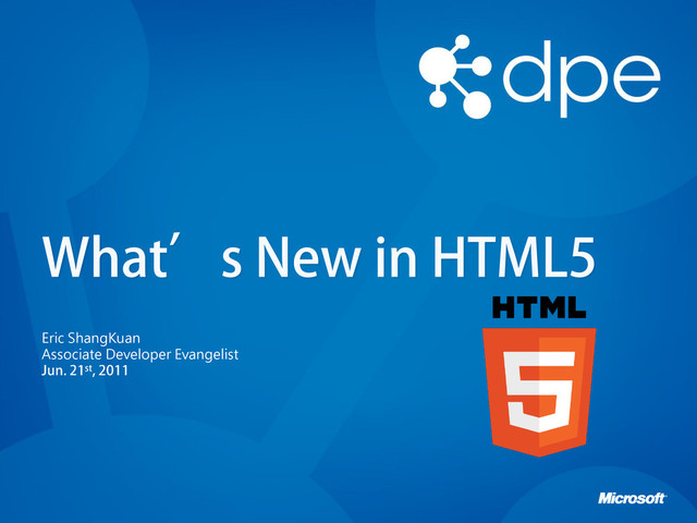 瀏覽器支援的影片編碼格式: IE 9 Firefox 5 Safari 5 Opera 11 Chrome 12 H.264 (.mp4) O O O* VP8 (.webm) O O O Theora (.ogg) O O O • MS 釋出 Firefox/Chrome 擴充工具以支援 H.264 影片 http://www.interoperabilitybridges.com/html5-extension-for-wmp-plugin http://www.interoperabilitybridges.com/wmp-extension-for-chrome • Google 釋出工具使 IE9 支援 VP8/WebM http://tools.google.com/dlpage/webmmf