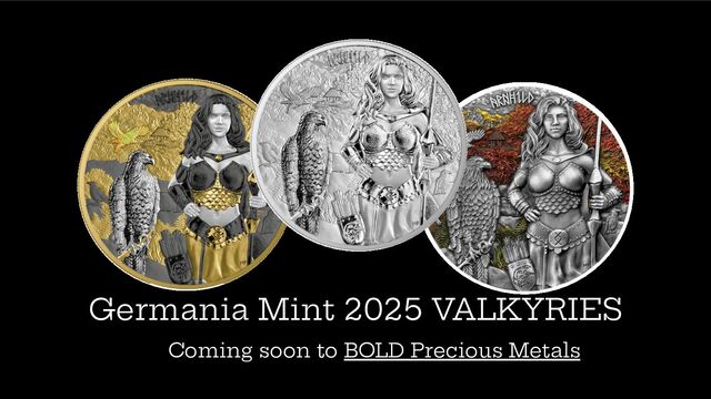 Discover the final chapter of Germania Mint's iconic Valkyries series. The 2025 release introduces Arnhild, the archer and guardian of the fortress, symbolizing strength, courage, and wisdom. Crafted with exceptional artistry, these limited-edition coins include the 1 oz Silver BU and the stunning 2 oz Ultra High Relief versions.