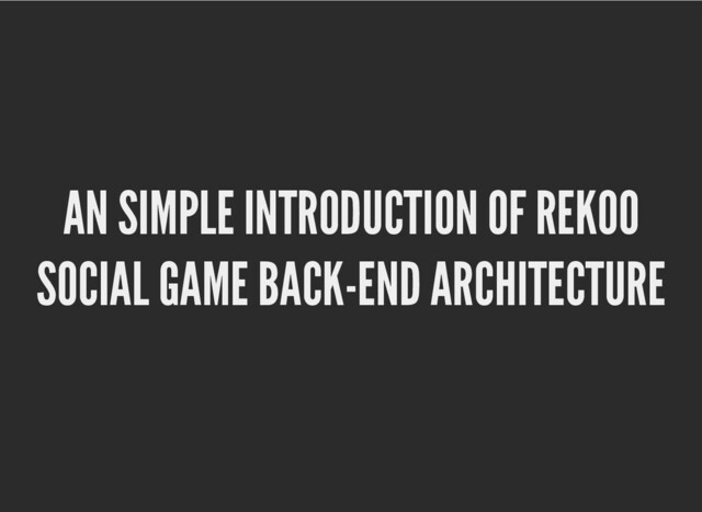 SOCIAL GAME BACK-END ARCHITECTURE SOCIAL GAME BACK-END ARCHITECTURE